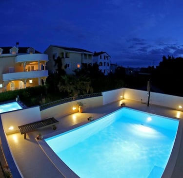 Villa Vanilla Zadar is set in an elegant and tranquil location, just a 10-minute walk from the sea, offering a refined retreat for a truly luxurious getaway. Guests can enjoy heated outdoor seawater pools, a beautifully landscaped Mediterranean garden, spacious and modernly equipped apartments with balconies, and excellent connections to the center of Zadar — a perfect blend of privacy, comfort, and prime location.